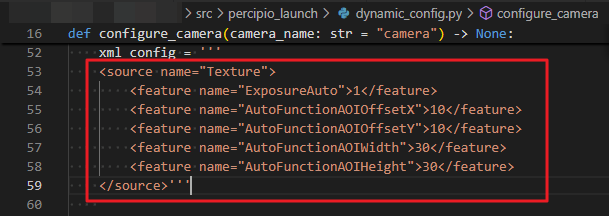 b. Navigate to the “src/percipio_launch” path, modify parameters in the dynamic_config.py file.