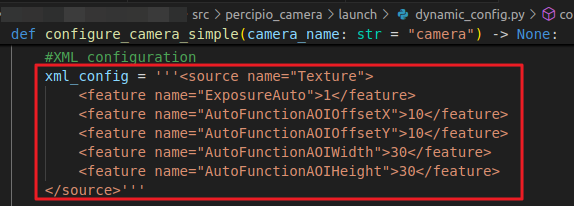 Method 1: Start the camera node. Navigate to the “install/percipio_camera/share/percipio_camera/launch” path, modify parameters in the dynamic_config.py file. Open another terminal, enter python3dynamic_config.py and run it.