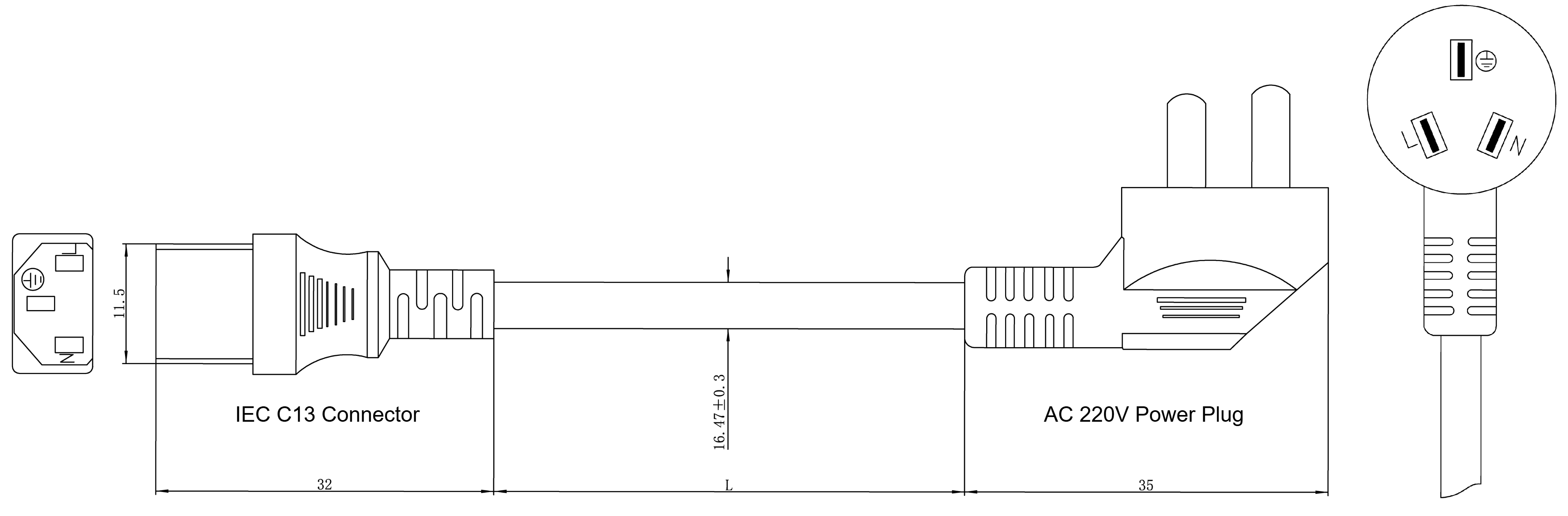 Triangular male AC 220V power plug |
