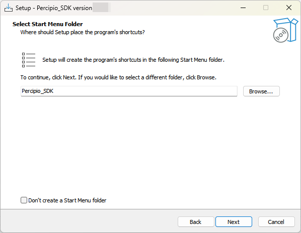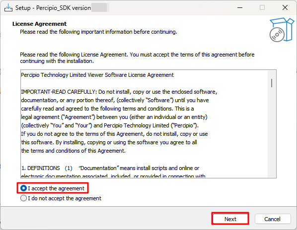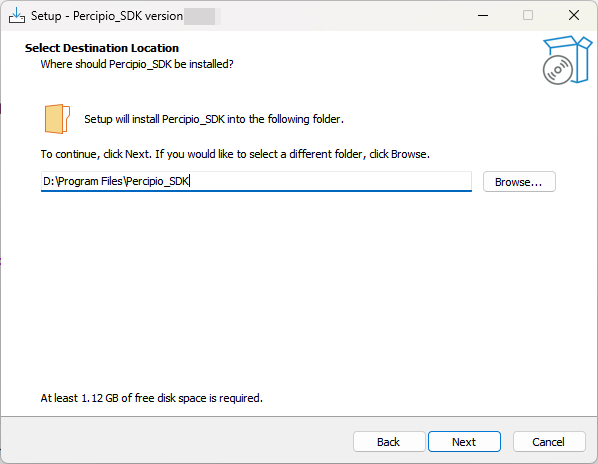 Vcamera_SDK.zip, double-clickPercipio_SDK-x.x.x-win64.exe.Select the language for stepup.