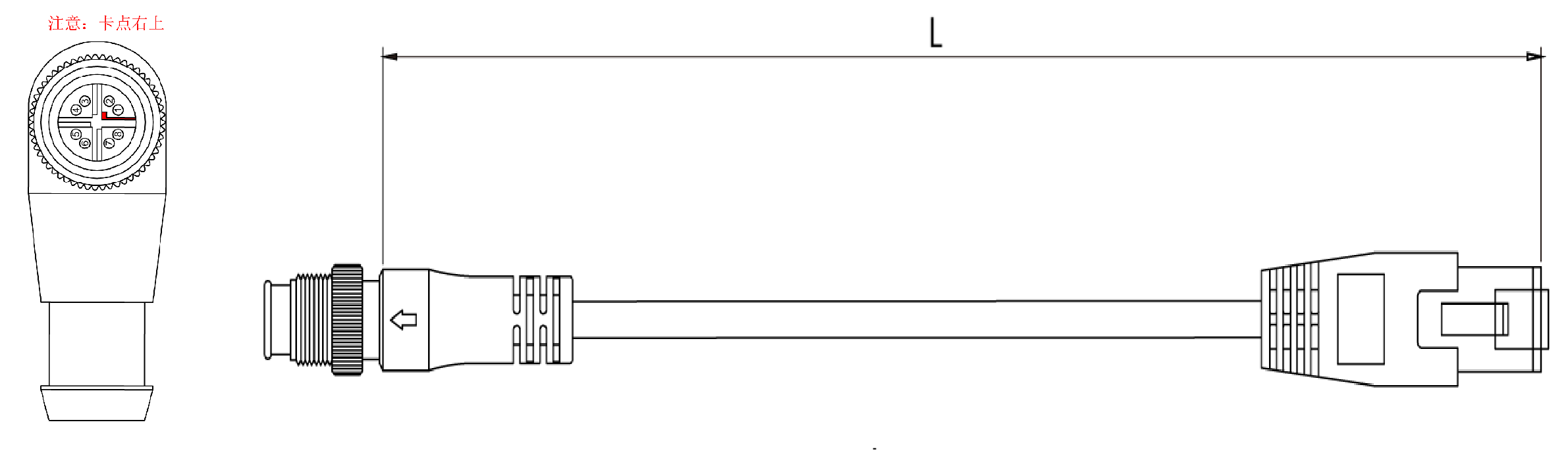 本线缆为固定安装设计的 Cat.6 以太网线,采用 M12 A-Code 8 针连接器,适用于静态环境下的相机数据通信。