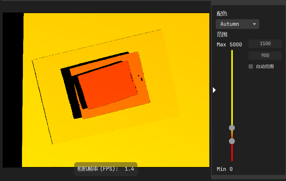 缩小范围至 1100-1450 mm 间:如下图所示,色彩对比鲜明,可清晰辨识物体的深度差异。
