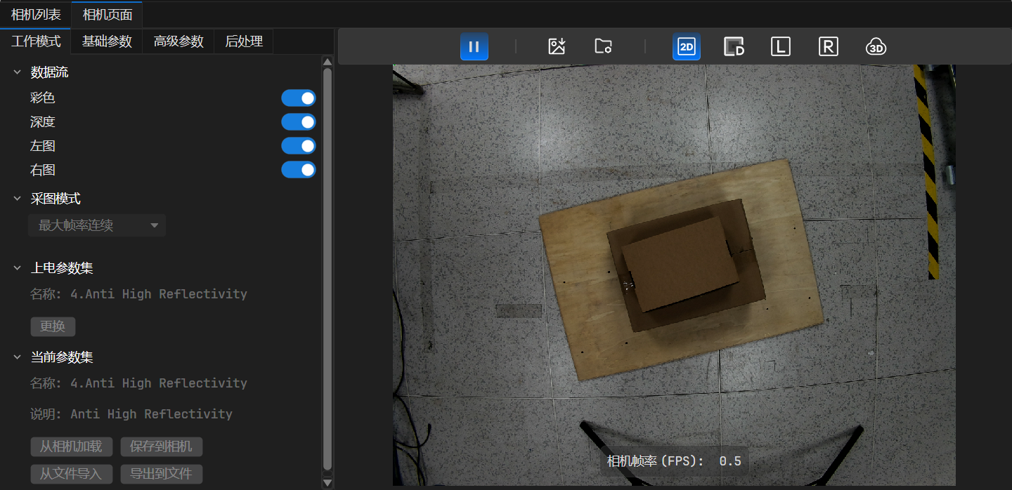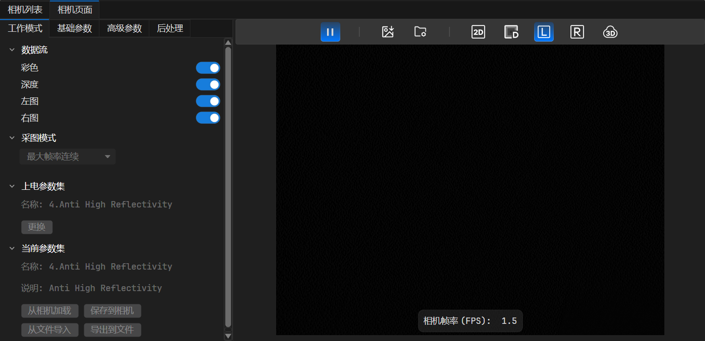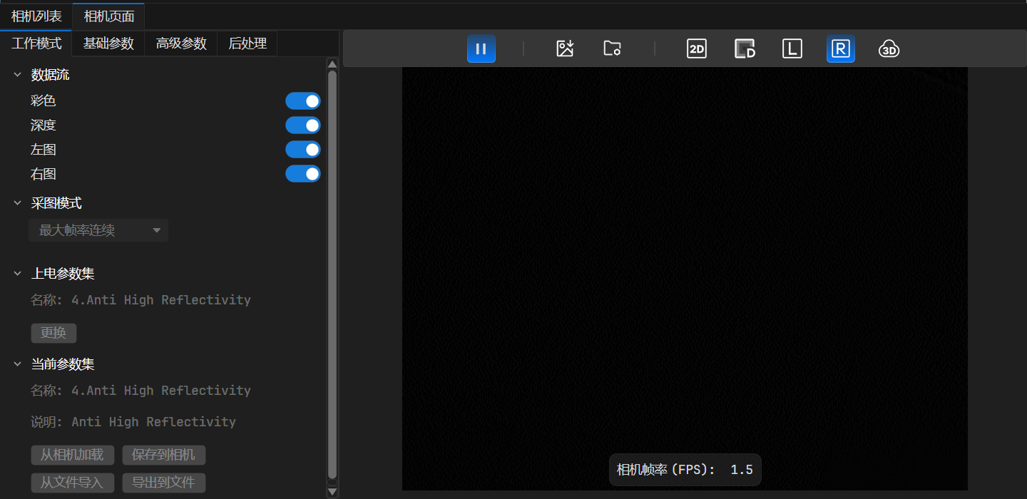 进入 相机页面 后,即可在 当前参数集 区域查看如下信息:“名称” 显示当前生效的参数集;“说明” 则是对软件该参数集的描述。