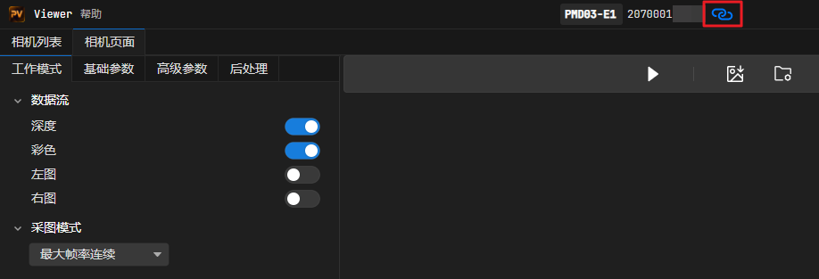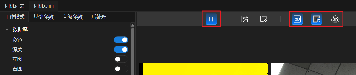 开启深度图显示时,可点击图像采集区右侧的