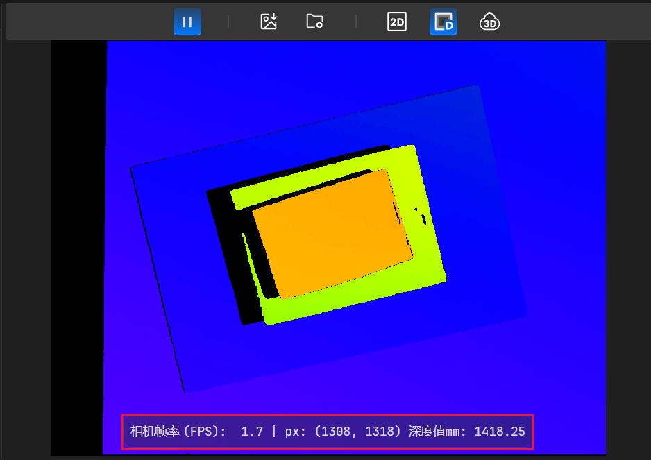 具体操作如下 :将鼠标放置于深度图上,即可查看鼠标所处像素点对应的像素坐标与实际深度值(单位:mm)。