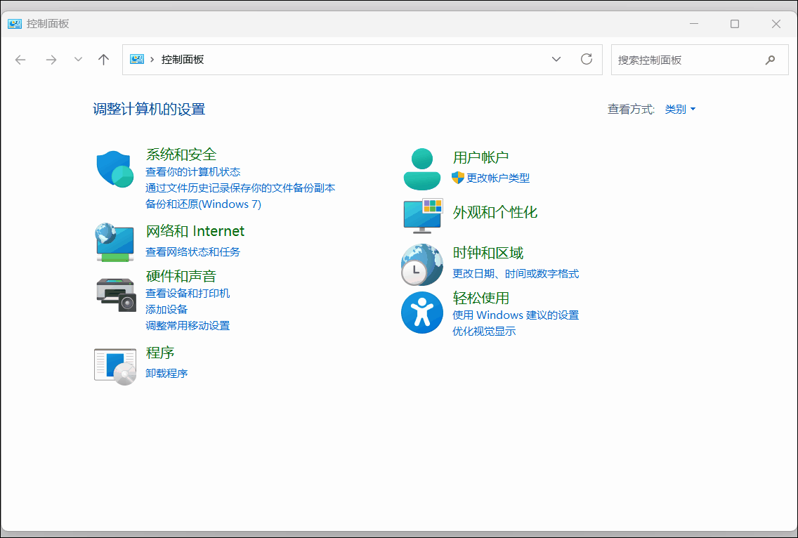 打开 控制面板,依次点击 “网络和 Internet” > “网络和共享中心” > “更改适配器配置”。