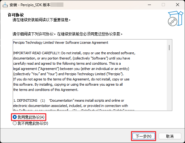 Vcamera_SDK.zip后,双击Percipio_SDK-x.x.x-win64.exe。选择安装语言。