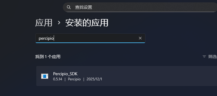 方式1:进入(Windows系统)设置 > 应用 > 安装的应用,搜索 “percipio”,找到 “Percipio_SDK” 并卸载。